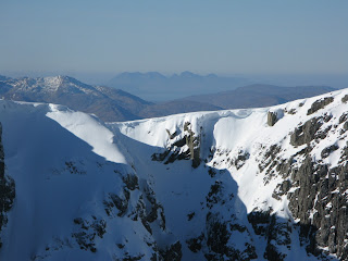 In terms of conditions there is still some great climbing to be had, the bright sunshine is still taking its toll on some routes and anything in the sun is basically in summer condition. But out of the sun its a different story, the snow and turf is still frozen hard after another very cold night and there is still plenty of ice. The rock is continuing to strip back and even out of the sun on Dollywaggon there was a bit less general whiteness than 2 days back, this said some routes were still in great condition. I was out with Jill who was keen to have a look at a Cold Climbs route so having been up 2 days ago I new Chock Gully would be good. It was definitely a case of keeping the faith as the crag looked sun bathed but once on the route and into the gully itself the route was in great condition, frozen solid throughout and with great ice on the main pitch. A great route with interest on every pitch and tricky for the grade... After that we headed to Dollywaggon and climbed Thrash Corner, another brilliant little route with good ice and turf throughout and a thin icy corner, its given IV/5 but is easy for the grade with the ice on the corner...